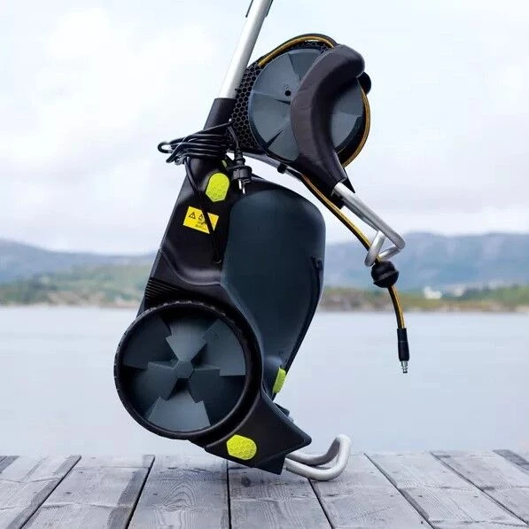 Frontstøtten sørger for at spyleren står stabilt under bruk. Støtten kan justeres slik at du kan dytte den inn om du er ferdig å bruke maskinen, eller trekke den ut før du starter vaskejobben.