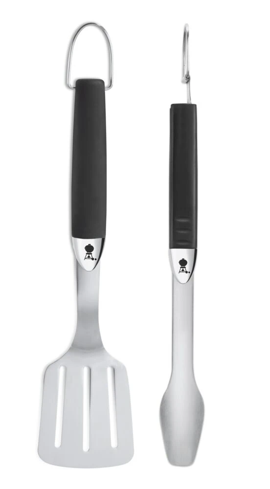 Todelt grillsett fra Weber Original™ bestående av grillspade og grillklype. Et godt utgangspunkt for all grillmat. Kompakt design som passer til en mindre grill.Håndtak med softcoating-belegg-varmebestandig og rengjøringsvennlig materiale. Passer til redskapskroker fra Weber Original™. Tåler oppvaskmaskin