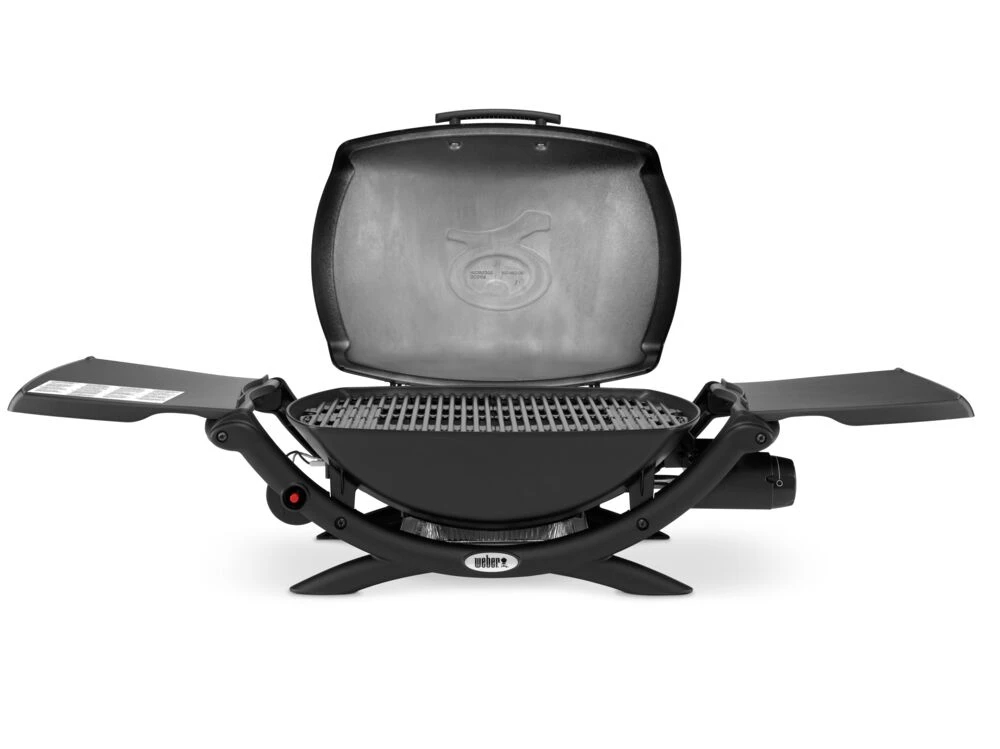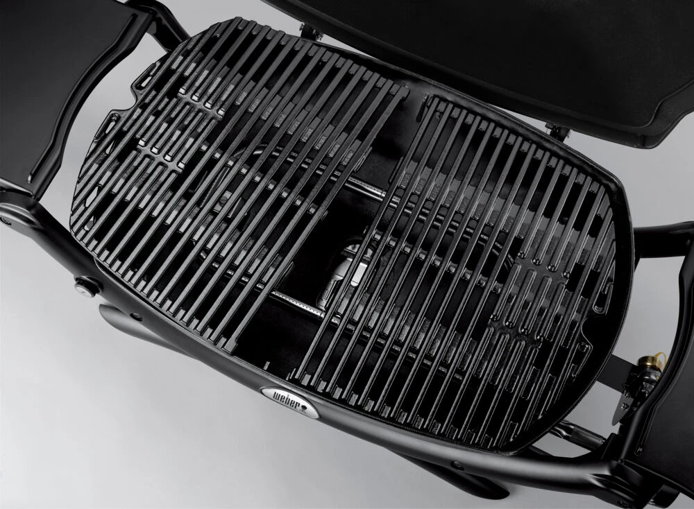 Q 2000 er utstyrt med aluminiumsbunn- og lokk som gir grillen rask oppvarming og nedkjøling. Den todelte porselensemaljerte støpejernristen gjør at du kan oppnå høy temperatur og de to sidebordene som kan foldes sammen gir deg ekstra plass når du har behov for det. Med i pakken følger det også med stekeplate og grillrist.